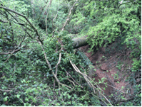 457mm/18” diameter Quinton Oaklands - Longbridge gas pipeline. The pipeline is contained with a 24” sleeve that protects the pipeline as it passes over the watercourse. Inspections have revealed that the blockwork walls that previously supported the sleeve have collapsed, causing the sleeve to drop and rest on top of the gas pipeline contained within.